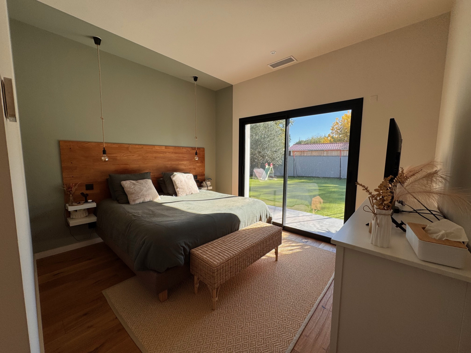 Cette villa de plain-pied offre des prestations haut de gamme : chauffage gainable réversible, vitres en verre sécurit, volets électriques, adoucisseur et répartiteur d'eau, borne de recharge pour voiture électrique, panneaux solaires triphasés de 9kw/h, alarme et vidéo surveillance...