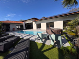 Edifiée sur un terrain de 1105m2 paysagé, avec vaste terrasse, cuisine d'été pour profiter des moments conviviaux, boulodrome, piscine au sel chauffée de 11x3.5 avec volet de sécurité immergé, portails électriques en alu, 2 places parking et un garage attenant et communiquant isolé et chauffé.